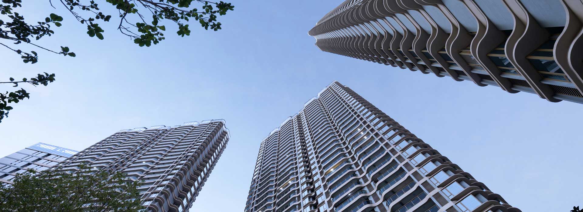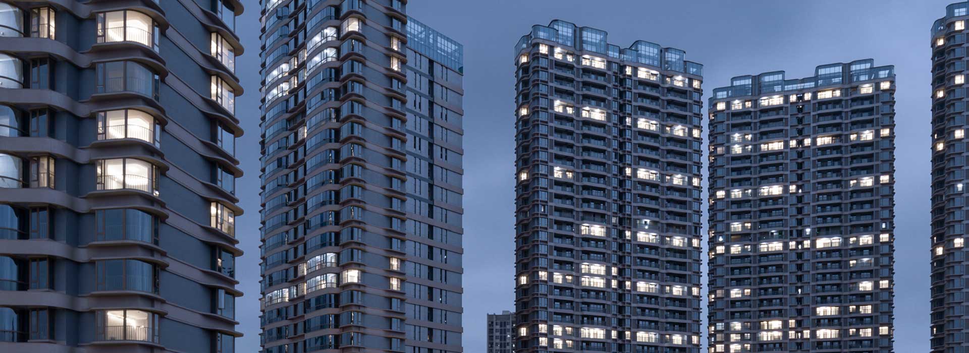 項(xiàng)目規(guī)劃分為南北兩個(gè)區(qū)域,南面是兩棟樓王組團(tuán),尊享一線觀西湖景觀;北面是三棟拼接樓棟,呈扇狀布局,圍合內(nèi)部主景觀,且最大化利用景觀展示面觀景。