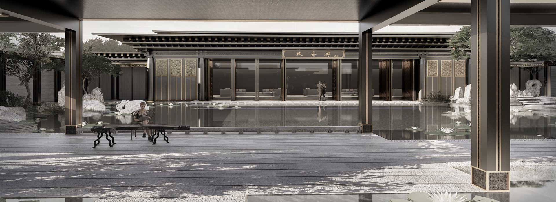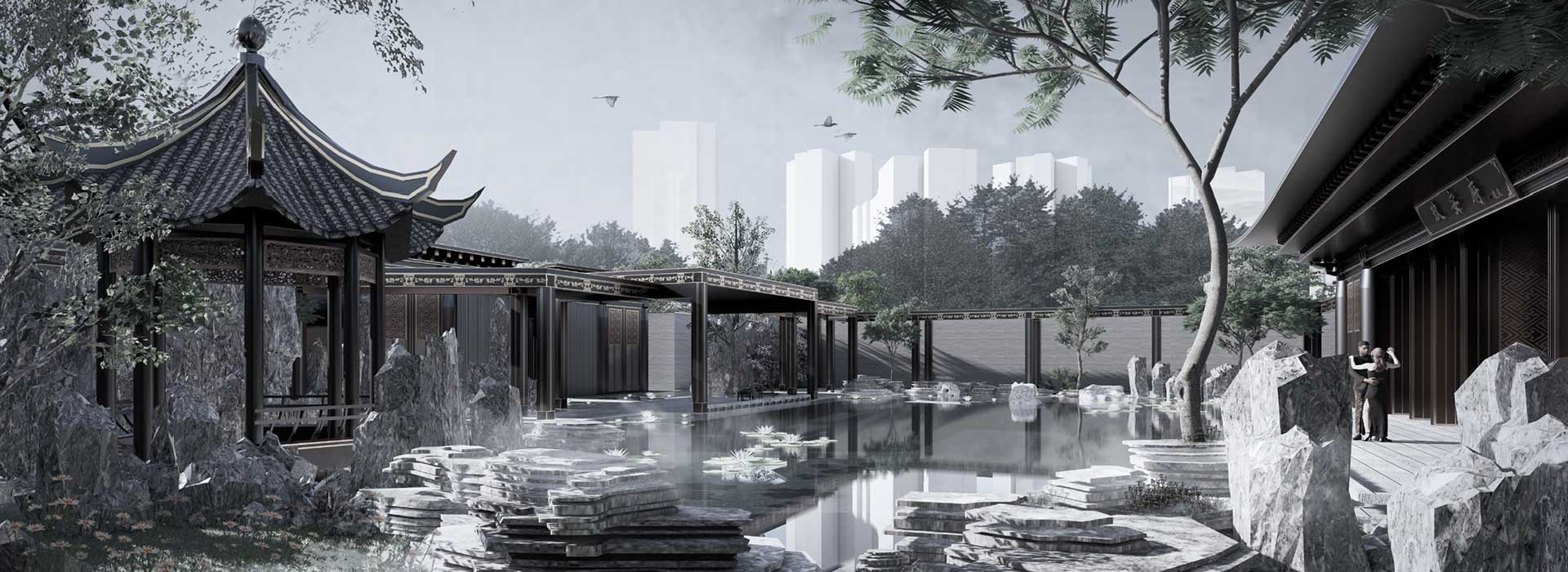 項(xiàng)目位于杭州市下城區(qū)文暉單元中心位置,屬國際旅游綜合體及會展中心區(qū)塊,區(qū)塊內(nèi)部規(guī)劃有康養(yǎng)國際旅游綜合體、和平廣場,南側(cè)方位規(guī)劃有地鐵商業(yè)綜合體。本案旨在打造收放有序的古典中式居住社區(qū),住宅建筑通過設(shè)置適當(dāng)面積的玻璃窗及觀景陽臺,在保證光照充足的基礎(chǔ)上,將室外景觀引入室內(nèi)成為整體化設(shè)計(jì)不可或缺的一部分,使室內(nèi)空間與室外環(huán)境相互融合,豐富了整體的視覺效果和心理感受