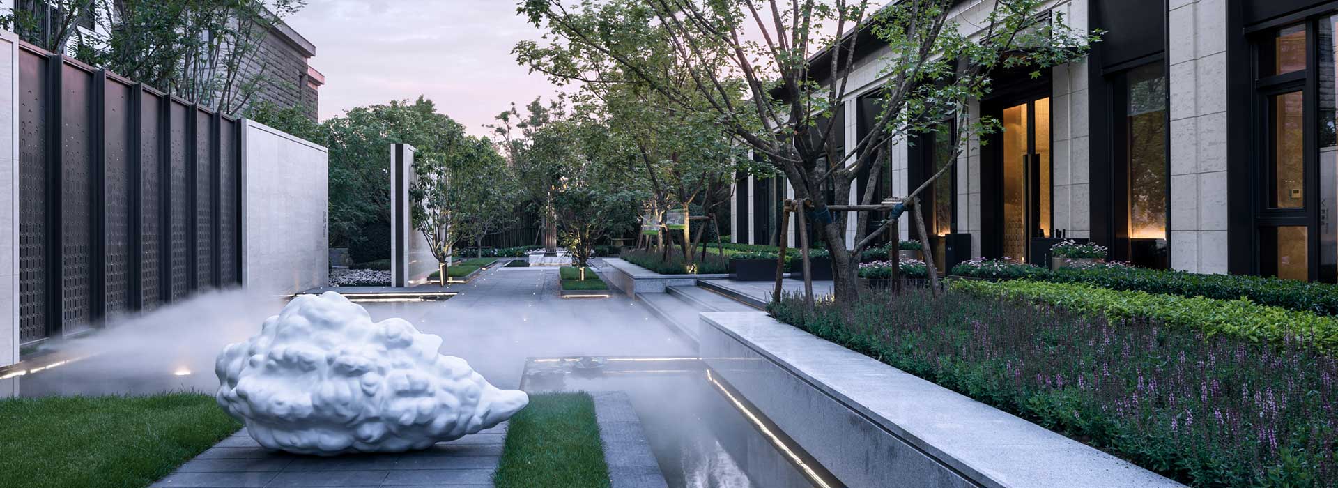 項目旨在打造臻境園林,居于城中,而心棲云端;穿行鬧市,而身感田園,是謂之逸景。于建筑細部的處理簡單而明確,對施工和選材的質(zhì)感以及材料顏色、紋路等精益求精,干凈的石材線條使得整個建筑更加的簡潔素雅,從而凸顯了其形體的純凈與挺拔的視覺感官,增強建筑本身不留矯飾痕跡的自然形式美。