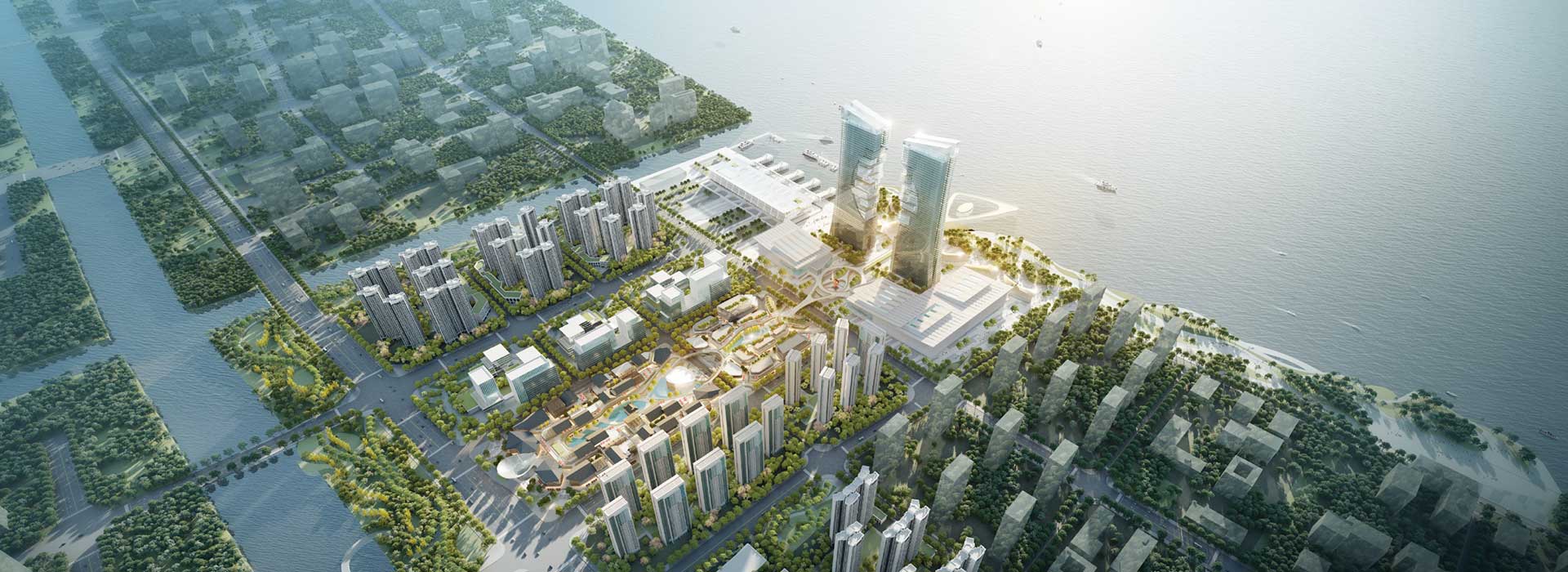 面向未來,打造一座“灣區(qū)之門”會展公園城市綜合體。項(xiàng)目包含會展中心、超高層、辦公酒店、嶺南商業(yè)風(fēng)情街、創(chuàng)意辦公、濱海公寓以及生態(tài)宜居社區(qū)。