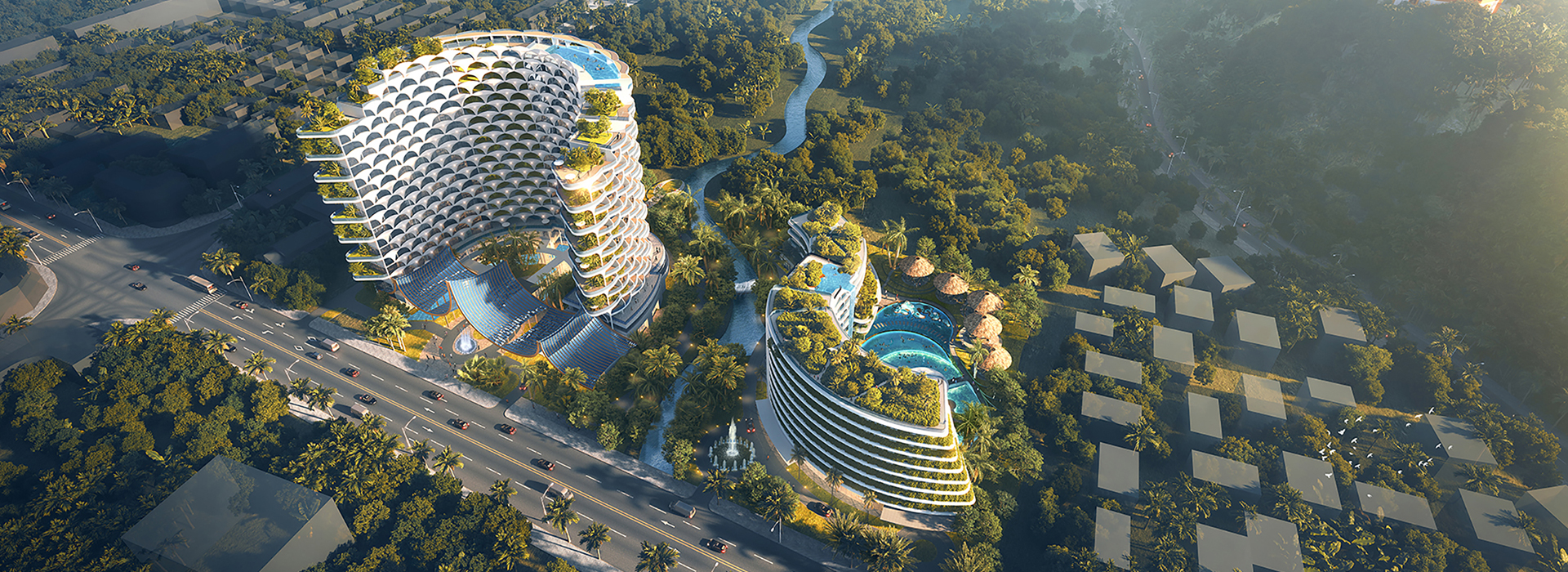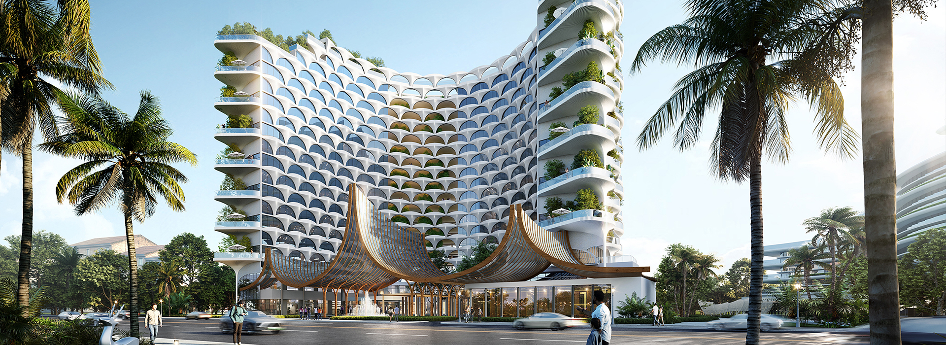 項目北地塊為洲際五星級假日酒店,南地塊為高端精品英迪格酒店,總建筑面積約6.5萬平方米。項目建成后,將成為芒市的點睛之筆,顯著提高孔雀湖旅游度假區(qū)游客居住環(huán)境,進(jìn)一步夯實芒市國家優(yōu)秀旅游城市根基。設(shè)計靈感源于孔雀,將其氣質(zhì)之美與建筑完美融合,同時融入孔雀舞的精髓、歷史傳說的神秘感以及細(xì)膩高雅的造型藝術(shù),打造獨具特征的度假產(chǎn)品。