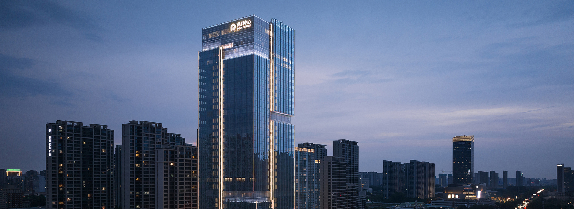 項目從鄭州城市文化中汲取靈感,將后母戊鼎的精致紋理提煉升華,轉(zhuǎn)化為一種龍騰九霄、奮發(fā)向上的建筑語言。幕墻系統(tǒng)整體采用了單元式幕墻。塔樓幕墻整體分為灰藍色和白色玻璃兩種材質(zhì),通過豎明橫隱的玻璃桿件以及角部特殊造型桿件,進一步強化了體塊之間的層次感和立體感。形體內(nèi)嵌的“龍騰”肌理采用白色玻璃,與外圍的灰藍色玻璃體塊形成鮮明對比。這種色差與線條變化的結(jié)合,巧妙地拉開了空間層次,增強了造型的視覺效果。