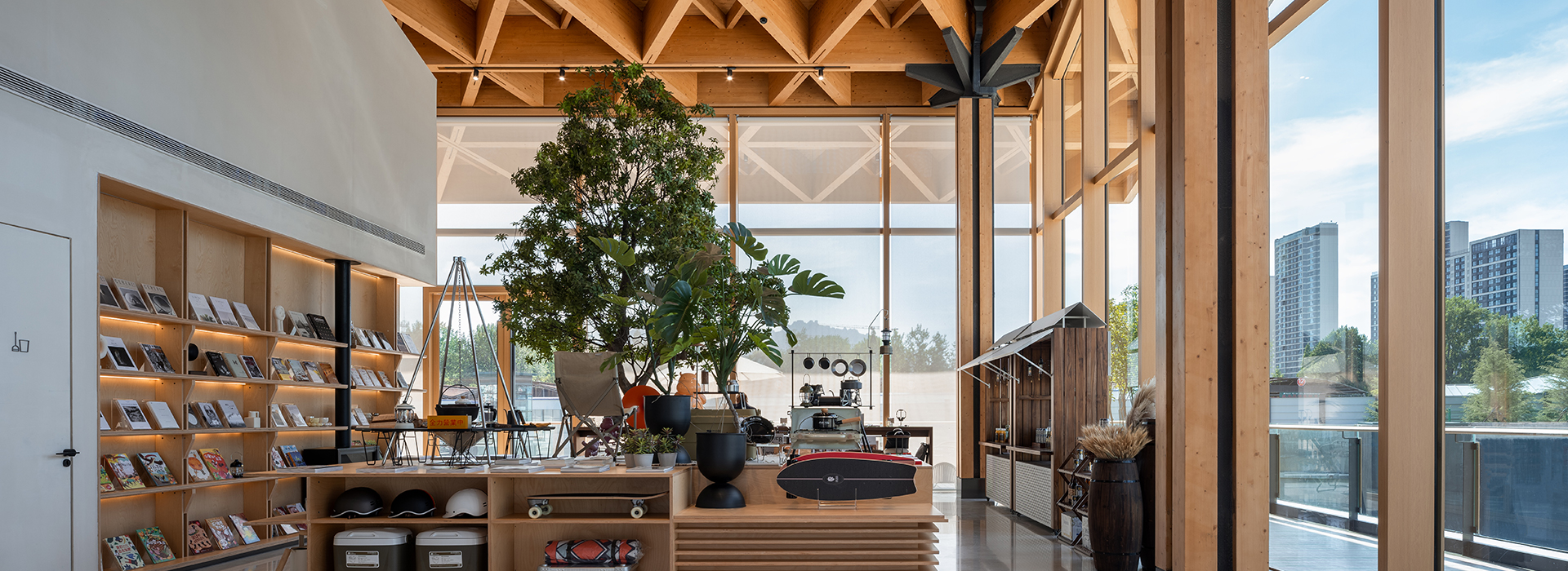 青島保利和著展示區(qū),是首個(gè) TOD 理想棲居地。靈感源于青島“向海而生,與山為鄰”的城市畫(huà)面,融合立體公園、運(yùn)動(dòng)與市集商業(yè)。雙坡懸山屋頂傳承中國(guó)傳統(tǒng)木構(gòu)坡屋頂形式,同時(shí)利用地塊內(nèi)高差打造多樣空間,提供多元?dú)w家流線;三角形木構(gòu)結(jié)合爪形承重結(jié)構(gòu)優(yōu)化了傳統(tǒng)屋面形式;為青島的文化續(xù)演注入新的活力,也將推動(dòng)公園式商業(yè)模式的發(fā)展,為未來(lái)的城市建設(shè)提供一種可持續(xù)發(fā)展的可能性。